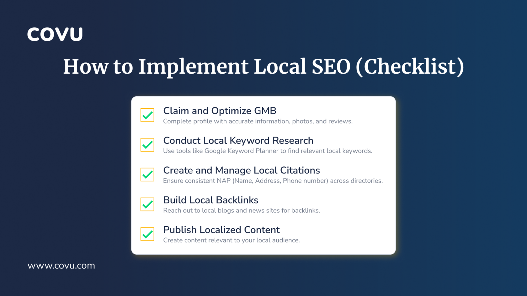 Here s a step-by-step checklist for implementing local SEO for insurance agents and owners: