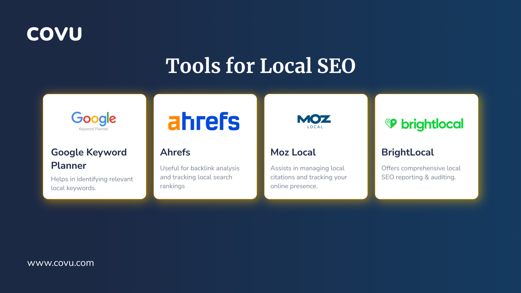 • Use tools like Google Keyword Planner and Ahrefs to identify relevant local keywords.