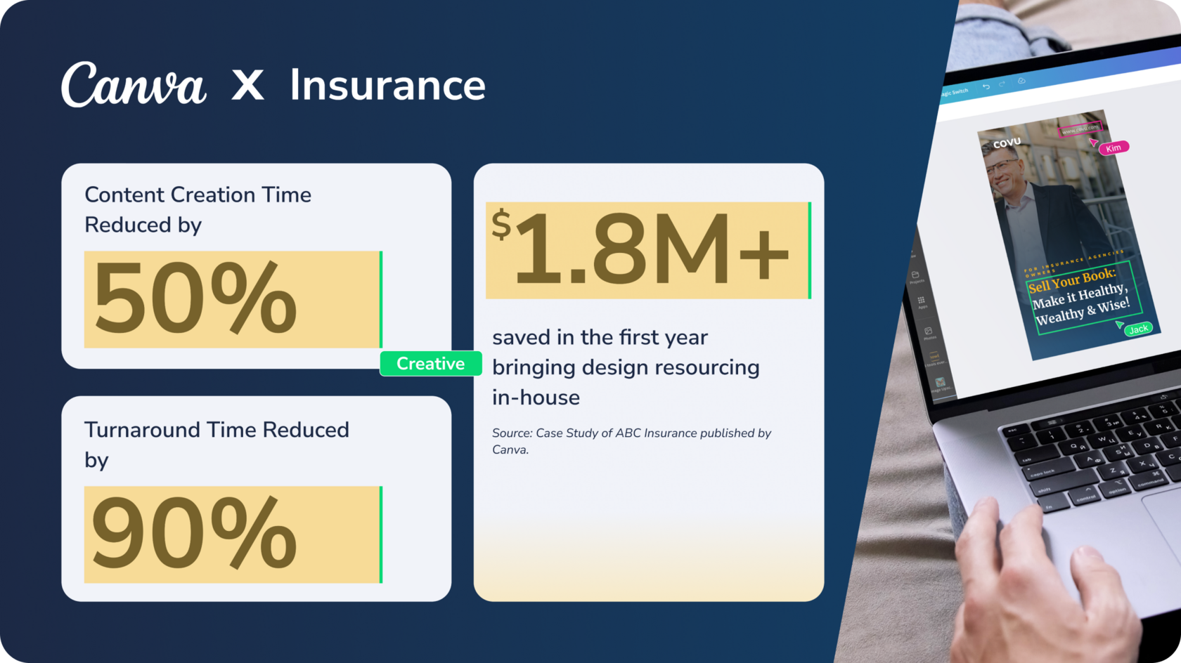 ABC Insurance adopted Canva Enterprise, which provided a self-serve design platform that all team members could use. The transition to Canva was smooth, and the team quickly adapted to the new system.