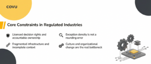 This is where the agent hype breaks on reality. In regulated industries, the core constraints are not purely technical, and many will not disappear on the model’s timeline.